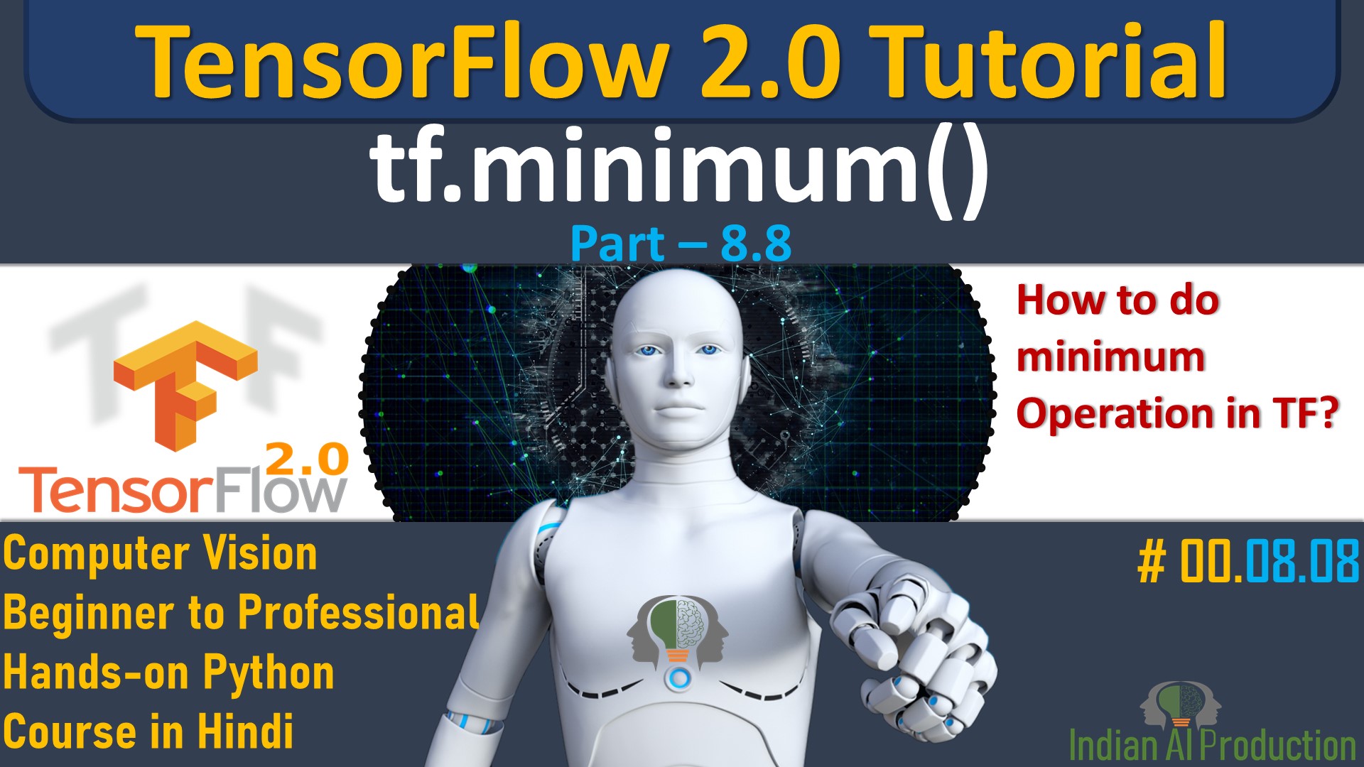 In TensorFlow 2.0 Python Tutorial, We will Learn about the TensorFlow Math Module tf.minimum() function. We will learn how to calculate the minimum values from tensors in TensorFlow using tf.minimum() function. tf.minimum() : Returns the minimum value by comparing of x and y (i.e. x > y ? x : y) element-wise.It works with list, tuple, scaler, Numpy arraytf variable/constant/placeholder/SparceMatrix with …